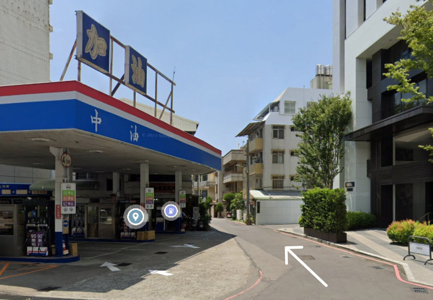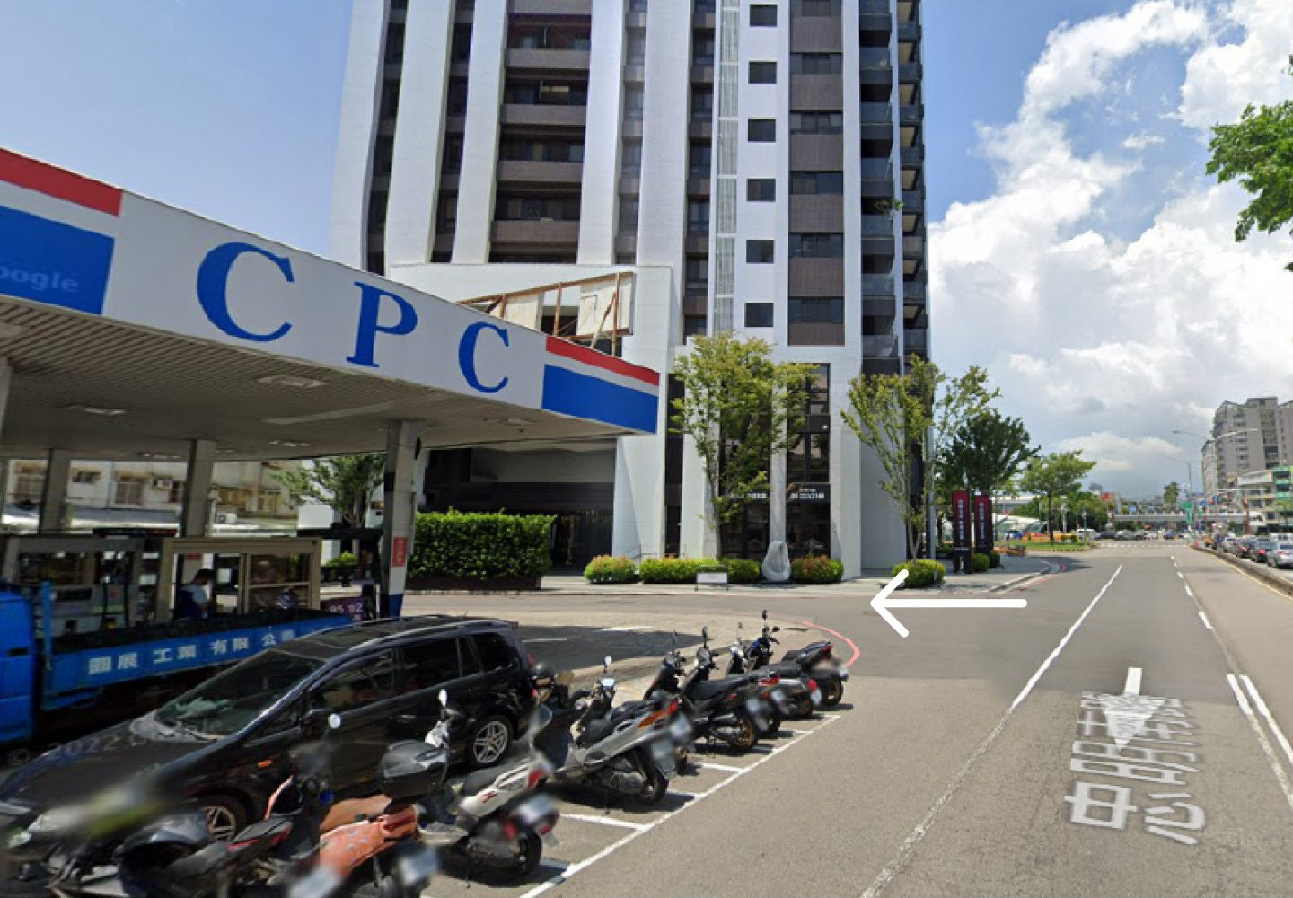台灣大道二段與忠明南路口→中油加油站前巷子右轉→直走約50公尺左手邊,白色建築物